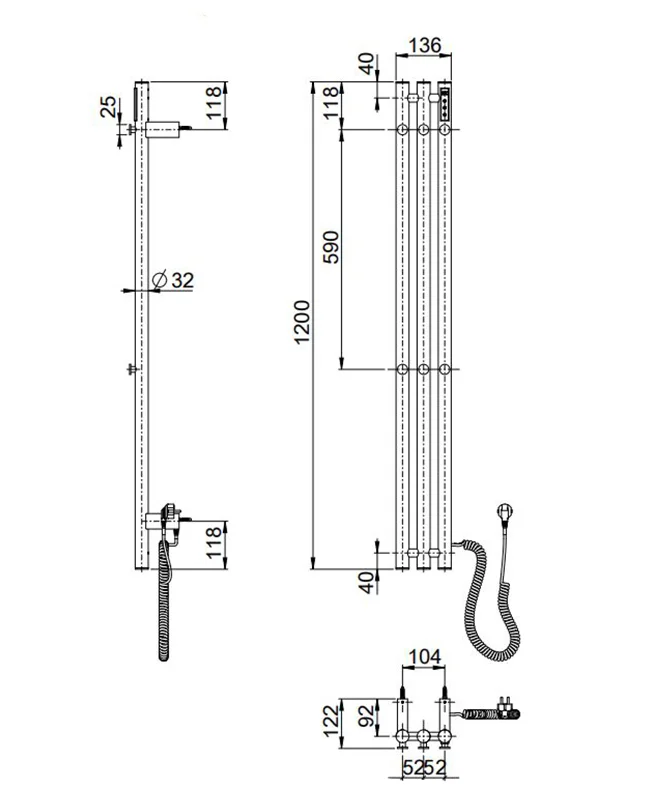 Полотенцесушитель электрический Wonzon & Woghand KASSEL (WW-AL72312-MB) черный матовый