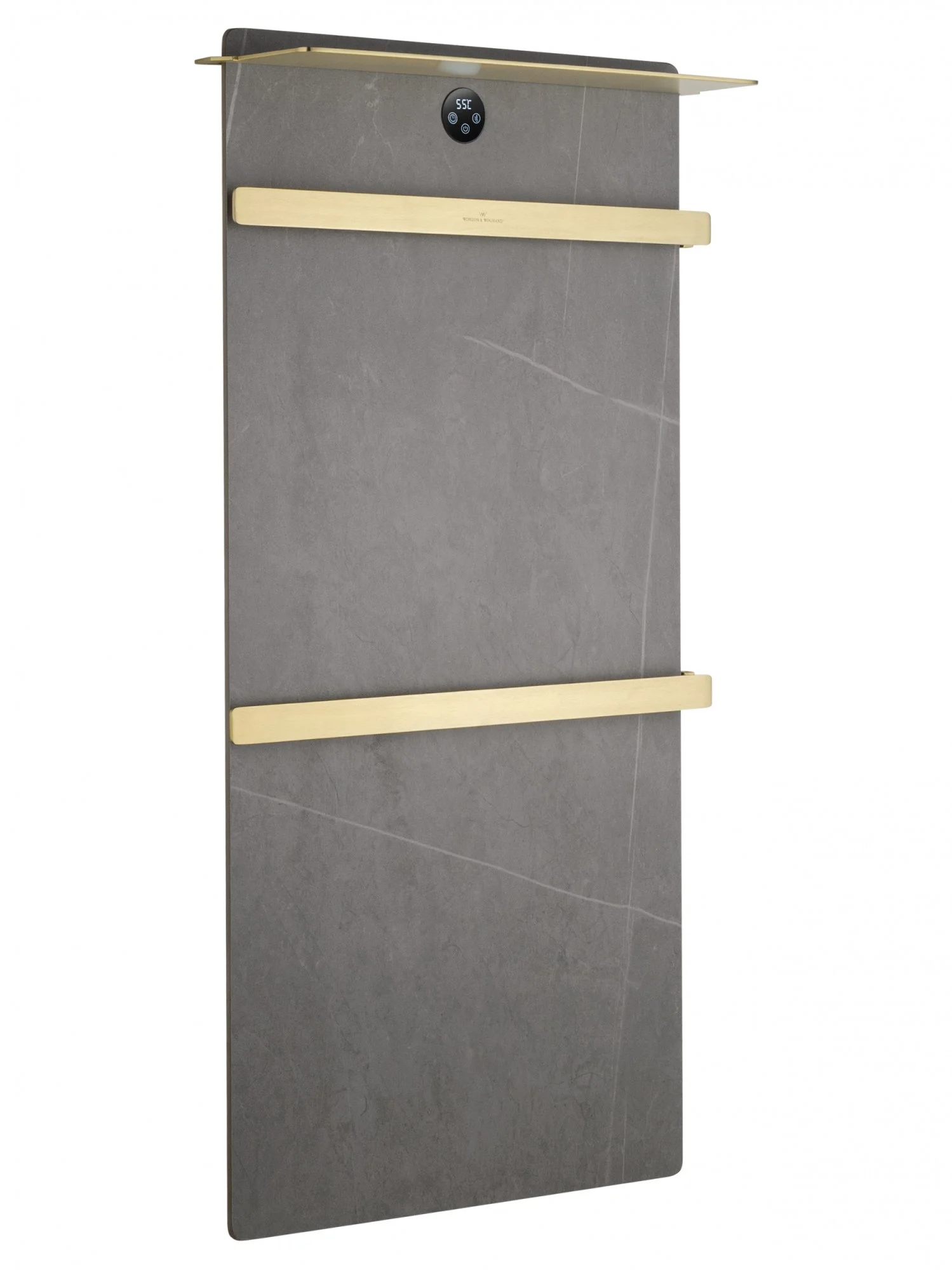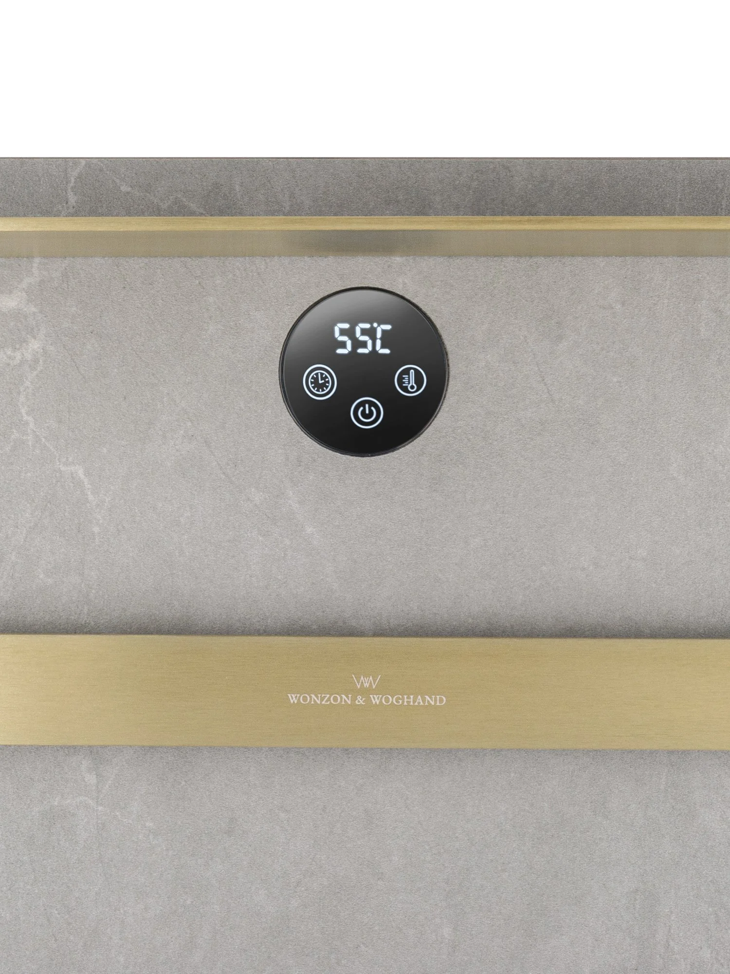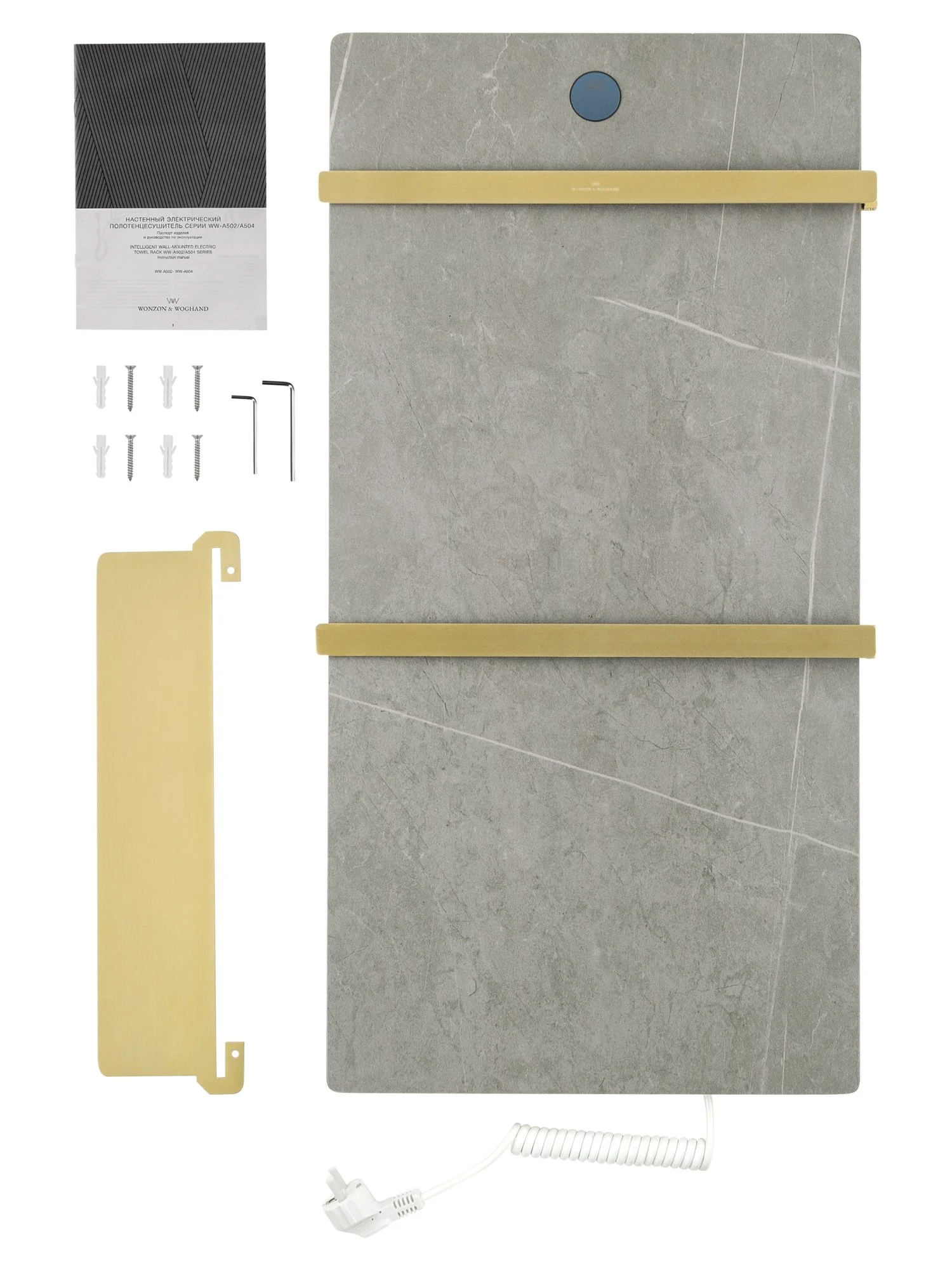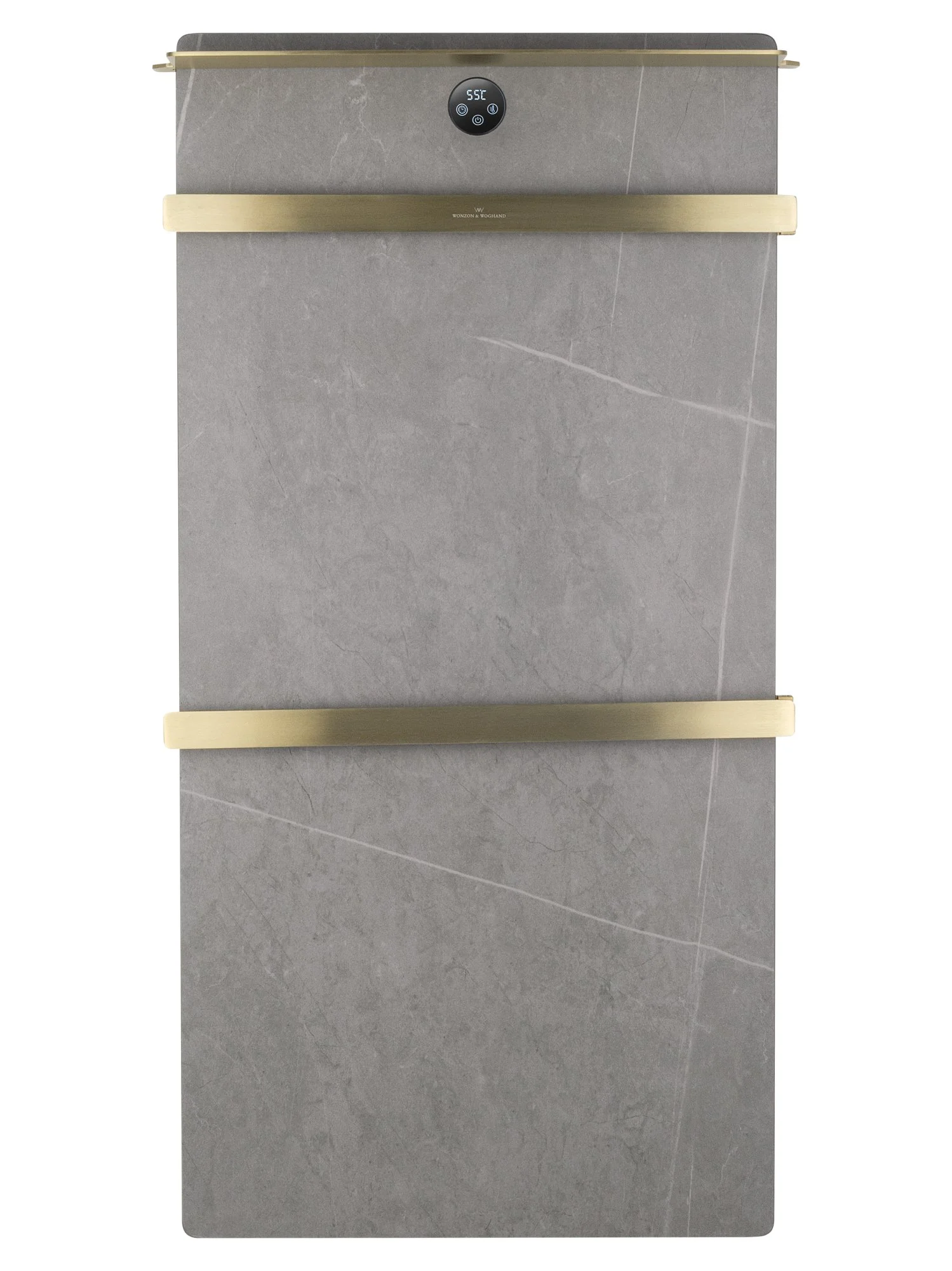 Полотенцесушитель электрический Wonzon & Woghand STUTTGART (WW-A504G-BG) с каменной плитой серый мрамор, брашированное золото