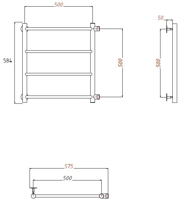 Полотенцесушитель водяной EWRIKA Сафо АС1 60x50 с боковым подключением 50 490627
