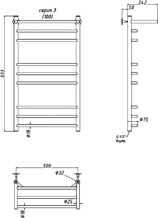 Полотенцесушитель водяной EWRIKA Сафо БР3 100х50, хром, с полкой, с монтажным набором 593399