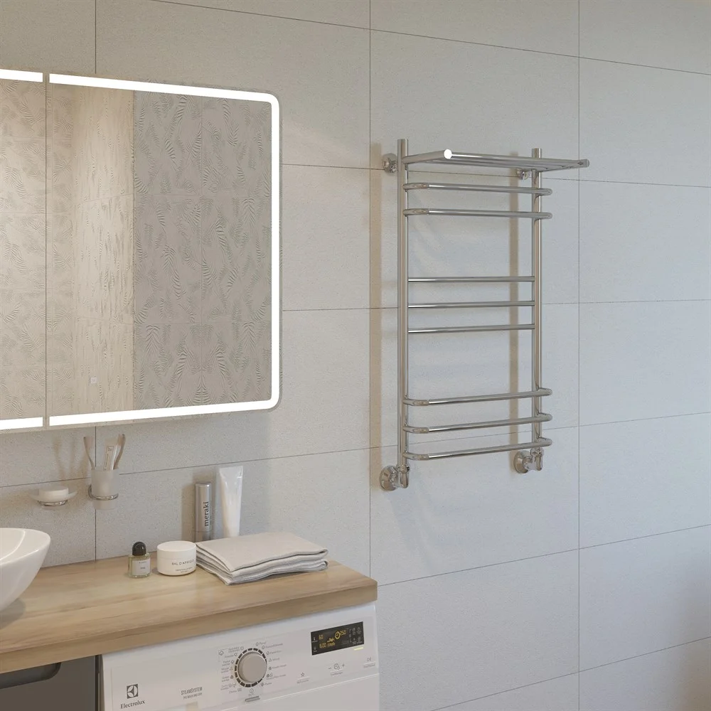 Полотенцесушитель водяной EWRIKA Сафо ИД1 100х50, хром, с полкой, с монтажным набором 593605