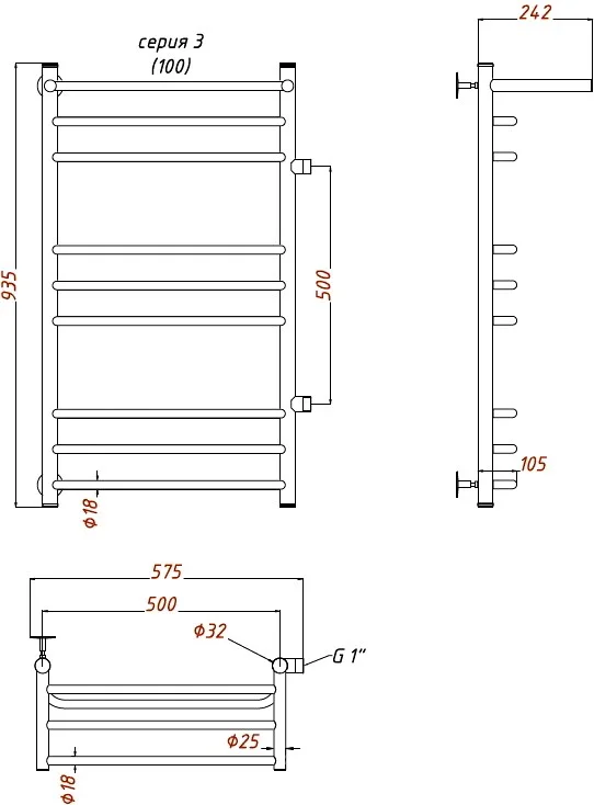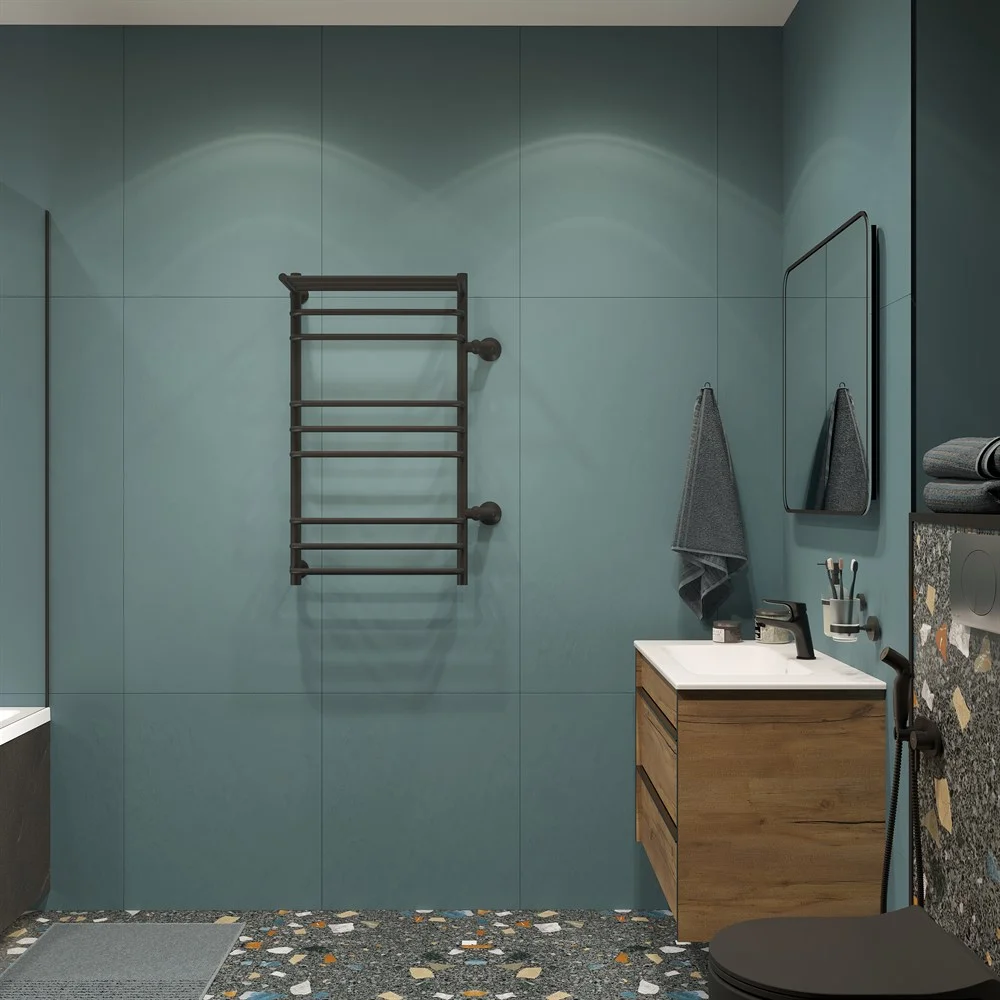 Полотенцесушитель водяной EWRIKA Сафо ИДЗ 100х50, черный, с полкой, с боковым подключением 50 справа 582288