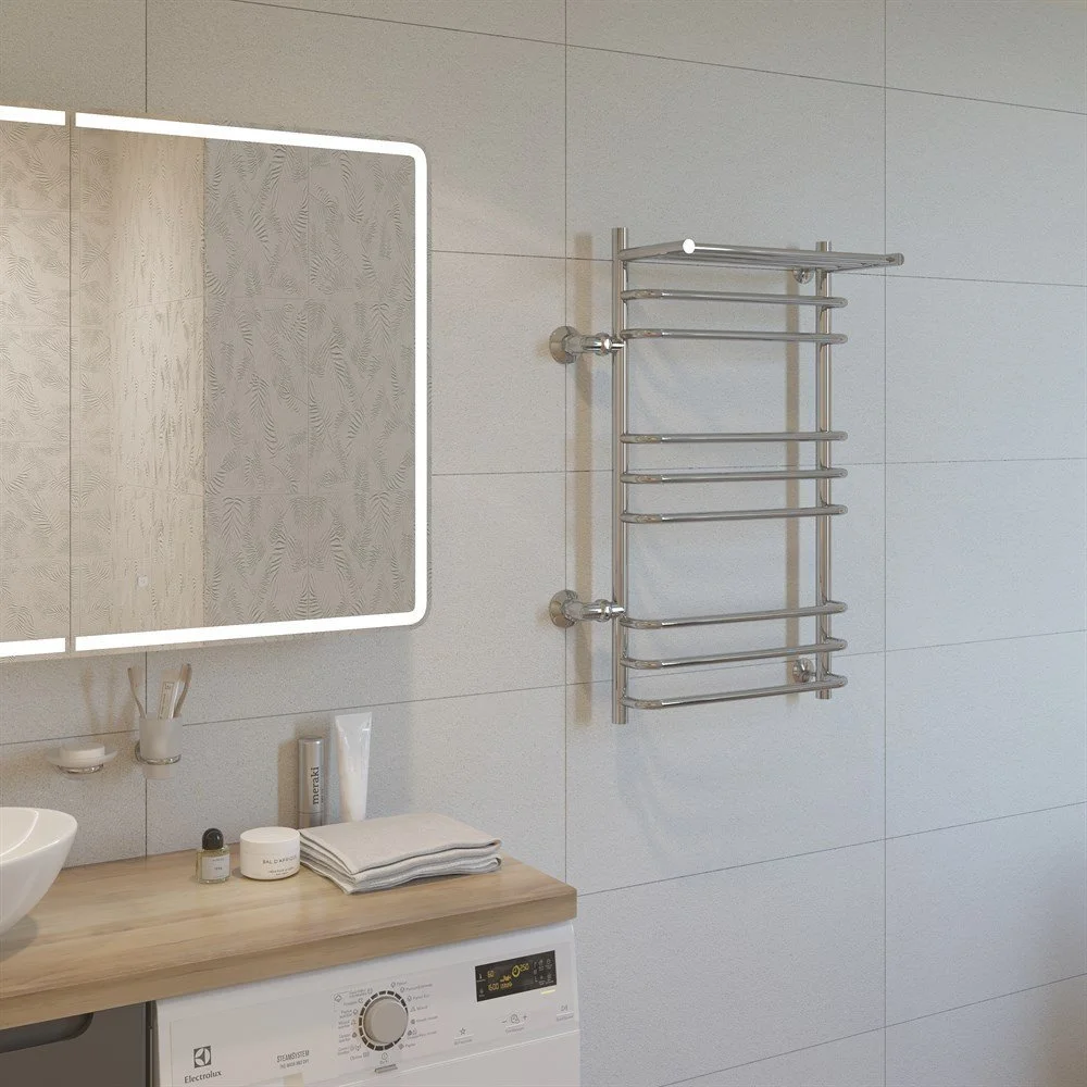 Полотенцесушитель водяной EWRIKA Сафо ИДЗ 100х50, хром, с полкой, с боковым подключением 50 слева 58 582272