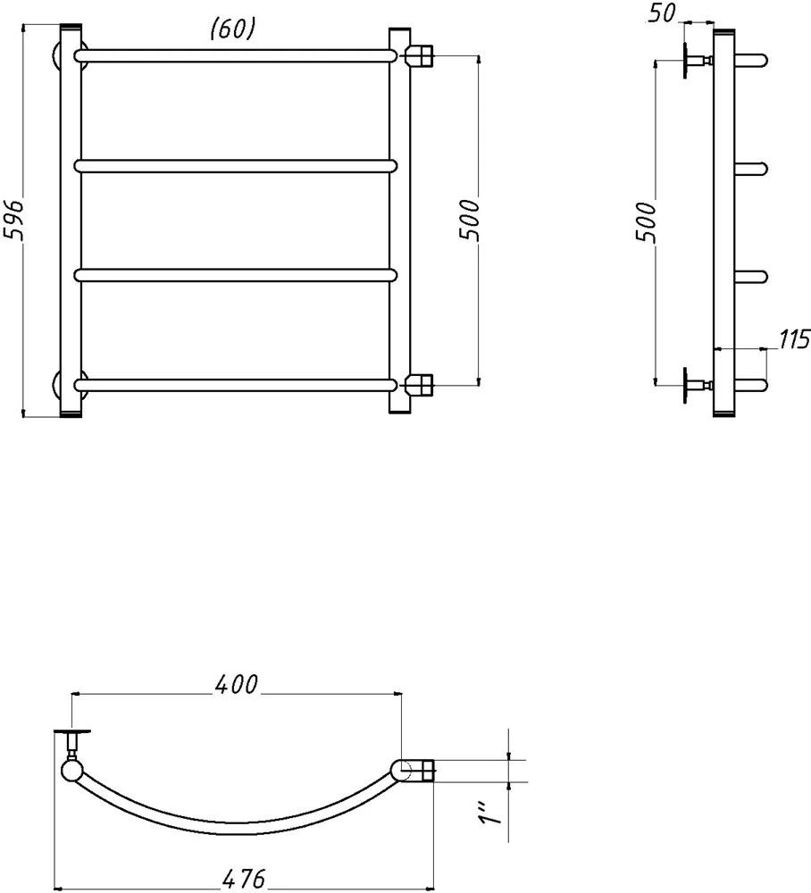 Полотенцесушитель водяной EWRIKA Сафо ПР1 60x40 с боковым подключением 50 490589