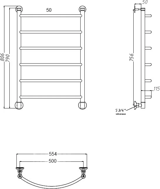 Полотенцесушитель водяной EWRIKA Сафо ПР1 80х50, хром, с монтажным набором 579512