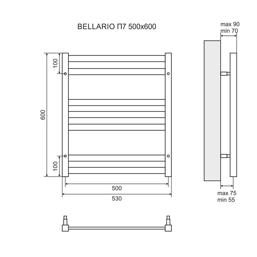Полотенцесушитель водяной Lemark Bellario LM68607 П7 500x600
