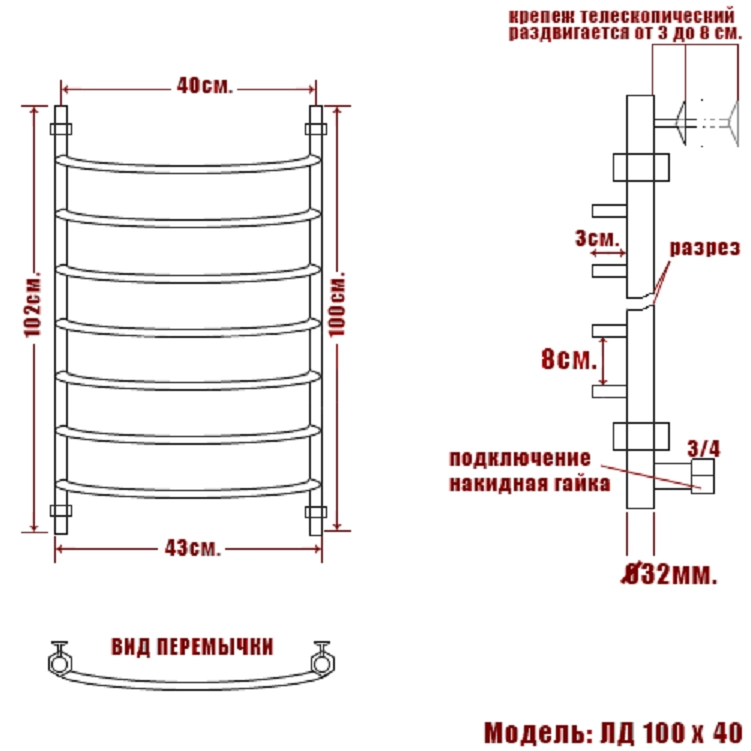 - Перекладина: в форме дуги