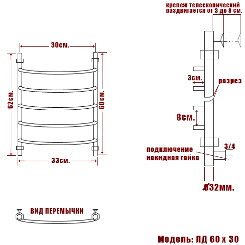 Полотенцесушитель водяной Ника Arc ЛД 60 x 30 см