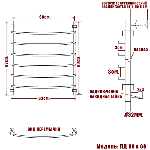 • Перекладина: в форме дуги