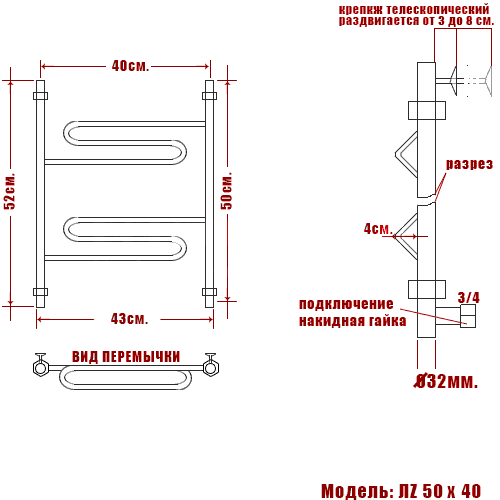 Полотенцесушитель водяной Ника CURVE ЛZ 50/40 ЛЗ 50/40