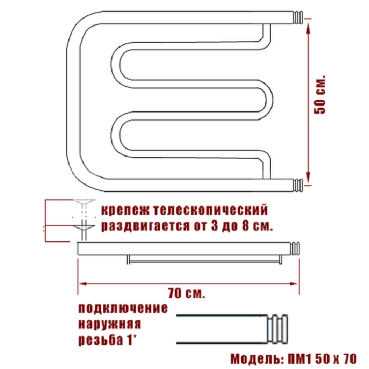 Полотенцесушитель водяной Ника ECON ПМ 50/70 с полкой