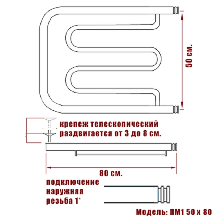 Полотенцесушитель водяной Ника ECON ПМ 50/80 с полкой бронза