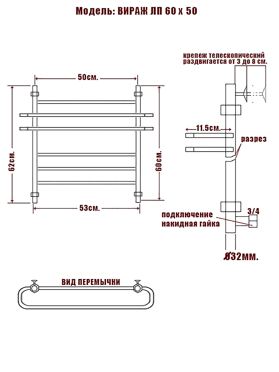 Полотенцесушитель водяной Ника MIX ЛП Вираж 60/50