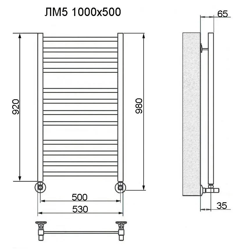 Полотенцесушитель водяной Ника MODERN ЛМ-5 100/50 RAL9005 черный матовый