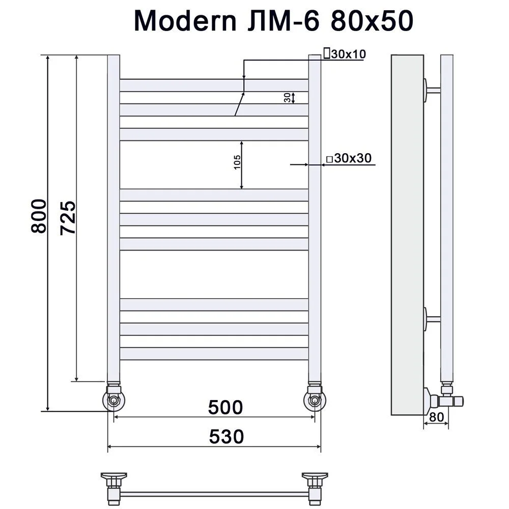 Полотенцесушители Modern ЛМ-6 имеют стильную современную конструкцию. Вертикальные стойки b горизонтальные перемычки – квадратные. Полотенцесушители ЛМ-6 изготавливаются из высококачественной нержавеющей стали AISI304, что гарантирует высокую теплоотдачу и длительный срок использования устройства. Порошковая покраска в черный цвет.