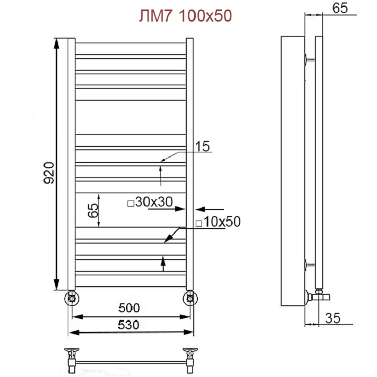 Полотенцесушители Modern ЛМ-7 имеют стильную современную конструкцию. Вертикальные стойки - квадратные, горизонтальные перемычки – прямоугольные. Полотенцесушители ЛМ-7 изготавливаются из высококачественной нержавеющей стали AISI304, что гарантирует высокую теплоотдачу и длительный срок использования устройства. Порошковая покраска в серебристый цвет.