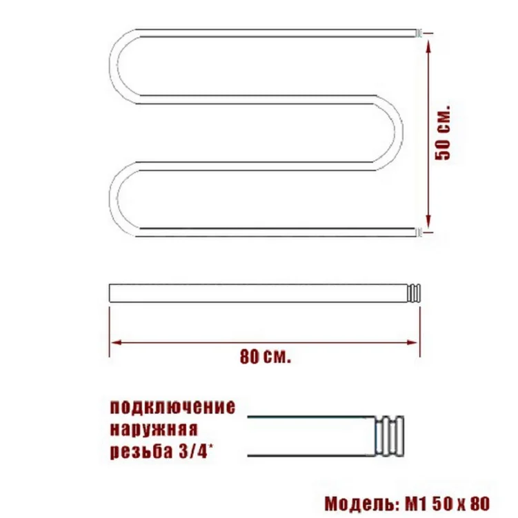 Полотенцесушитель водяной Ника SIMPLE М-обр. (3/4) 50/80 без полки