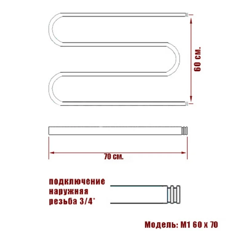 Полотенцесушитель водяной Ника SIMPLE М-обр. (3/4) 60/70 без полки