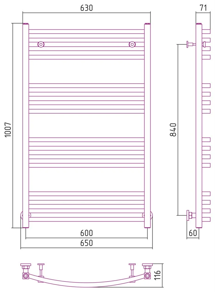 Полотенцесушитель водяной Сунержа Аркус 1000х600 15-0251-1060 Темный титан муар