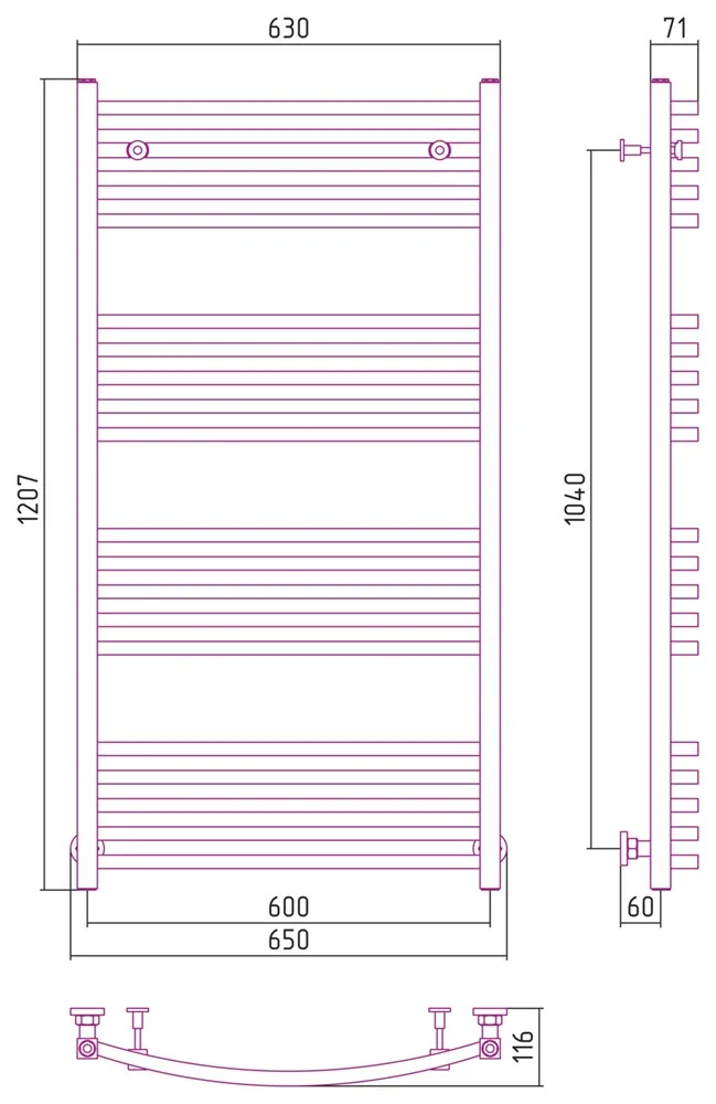 Полотенцесушитель водяной Сунержа Аркус 1200х600 15-0251-1260 Темный титан муар
