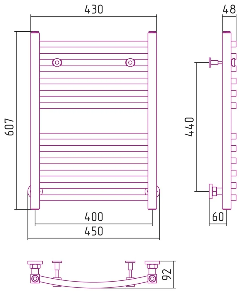 Полотенцесушитель водяной Сунержа Аркус 600х400 032-0251-6040 Матовое золото