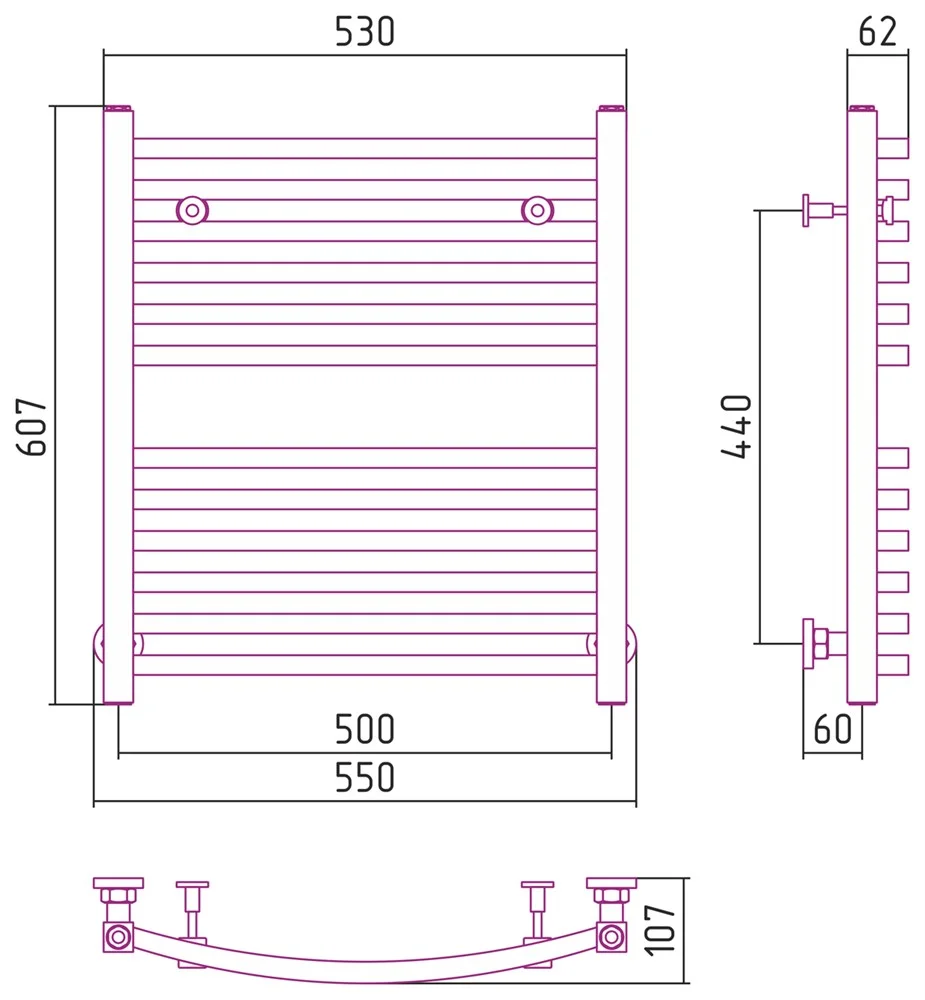 Полотенцесушитель водяной Сунержа Аркус 600х500 022-0251-6050 Матовая шампань