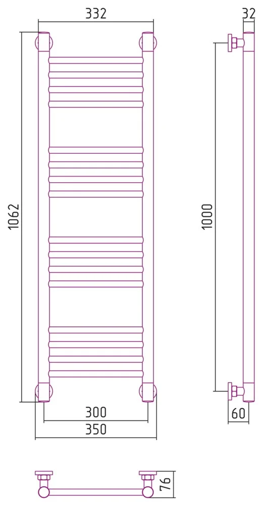 Полотенцесушитель водяной Сунержа Богема+ прямая 1000х300 12-0220-1030 Белый