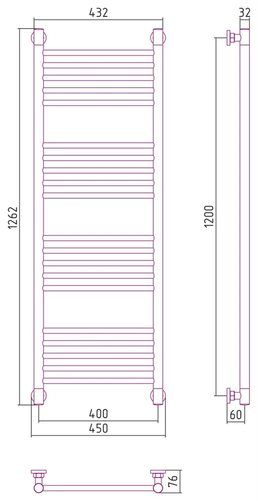 Полотенцесушитель водяной Сунержа Богема+ прямая 1200х400 071-0220-1240 Сатин
