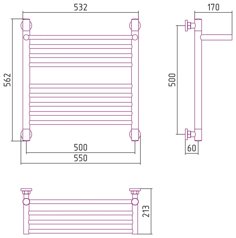 Полотенцесушитель водяной Сунержа Богема с полкой+ 500х500 12-0223-5050 Белый