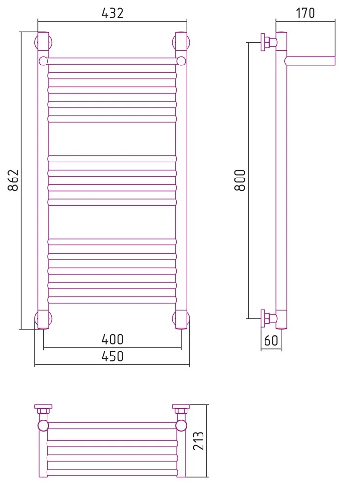 Полотенцесушитель водяной Сунержа Богема с полкой+ 800х400 051-0223-8040 Состаренная латунь