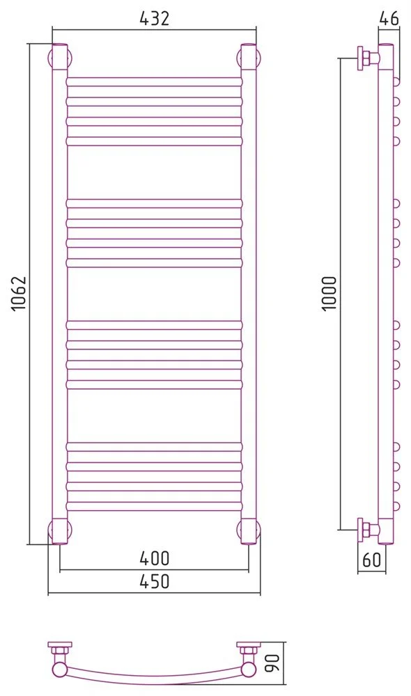 Полотенцесушитель водяной Сунержа Богема+ выгнутая 1000х400 30-0221-1040 Матовый белый