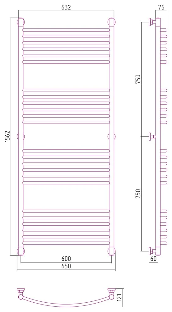 Полотенцесушитель водяной Сунержа Богема+ выгнутая 1500х600 30-0221-1560 Матовый белый