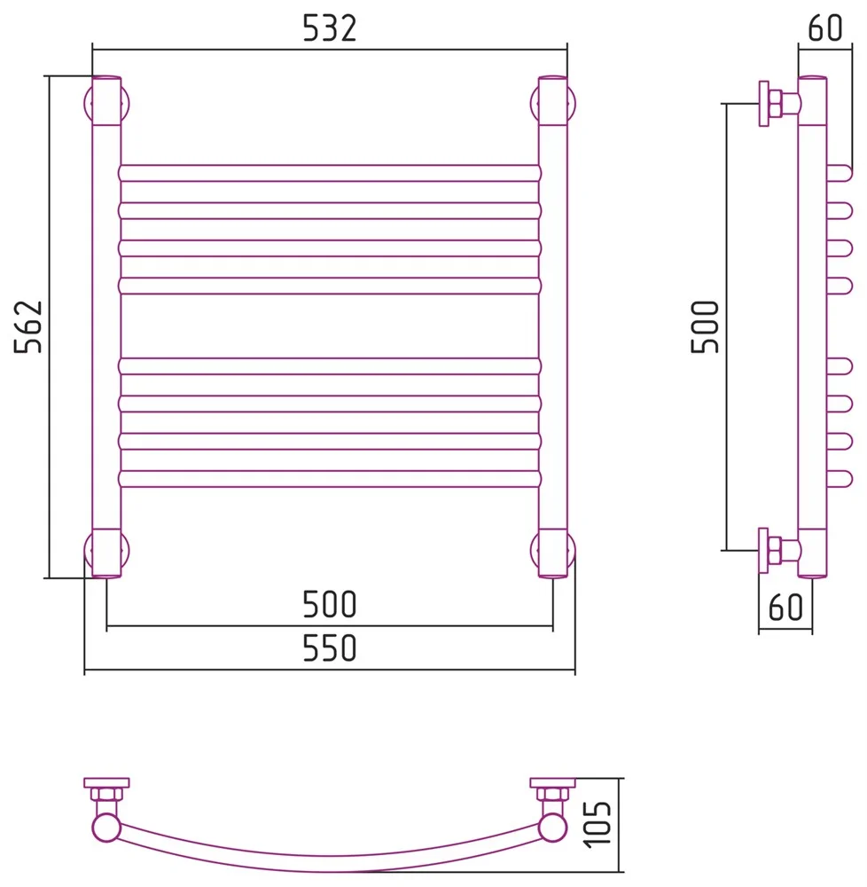 Полотенцесушитель водяной Сунержа Богема+ выгнутая 500х500 00-0221-5050 Без покрытия
