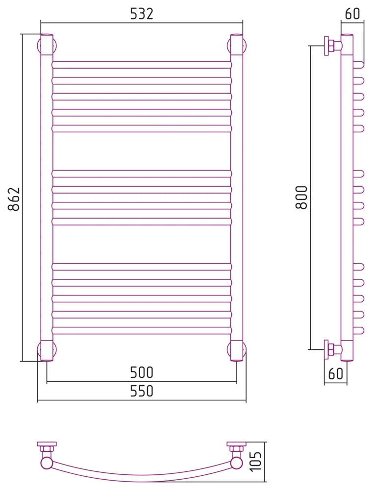 Полотенцесушитель водяной Сунержа Богема+ выгнутая 800х500 020-0221-8050 Шампань