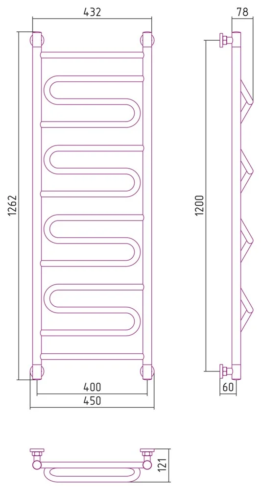 Полотенцесушитель водяной Сунержа Элегия+ 1200х400 30-0205-1240 Матовый белый
