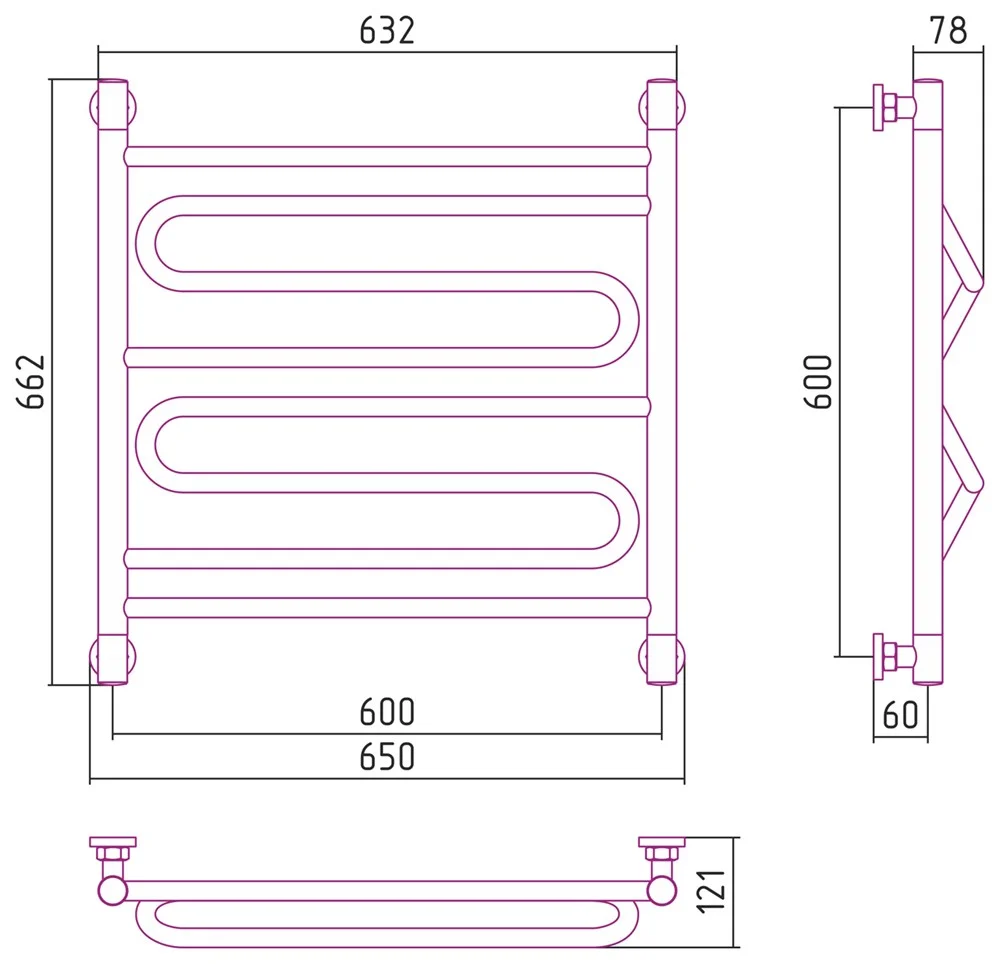 Полотенцесушитель водяной Сунержа Элегия+ 600х600 31-0205-6060 Матовый черный