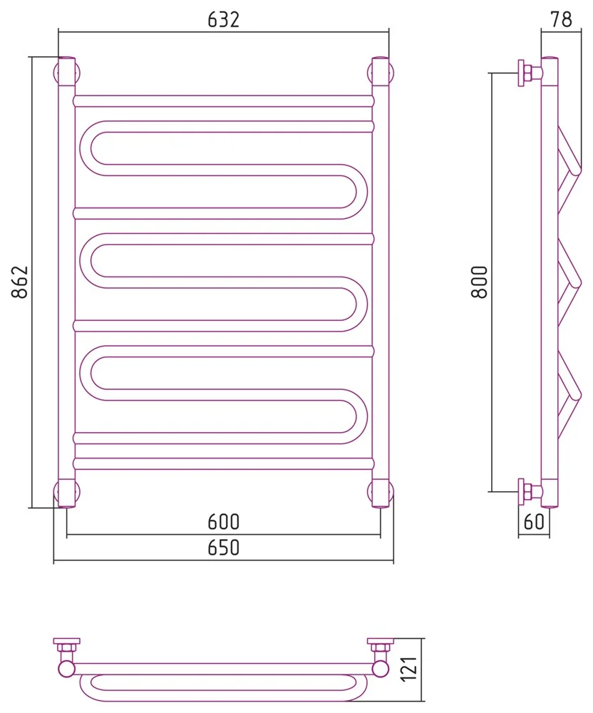 Полотенцесушитель водяной Сунержа Элегия+ 800х600 12-0205-8060 Белый