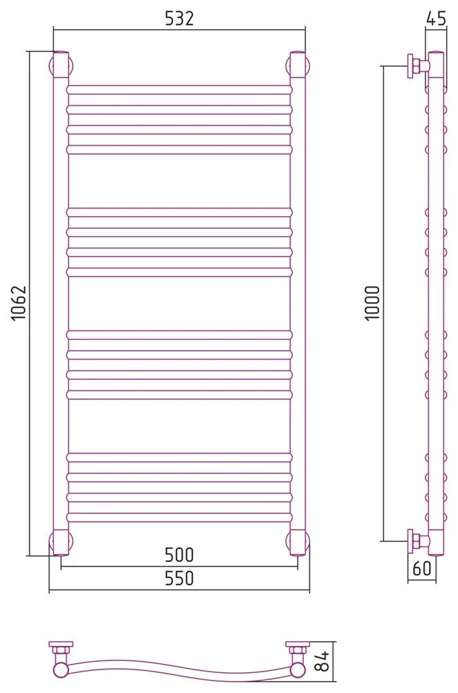 Полотенцесушитель водяной Сунержа Флюид+ 1000х500 31-0222-1050 Матовый черный