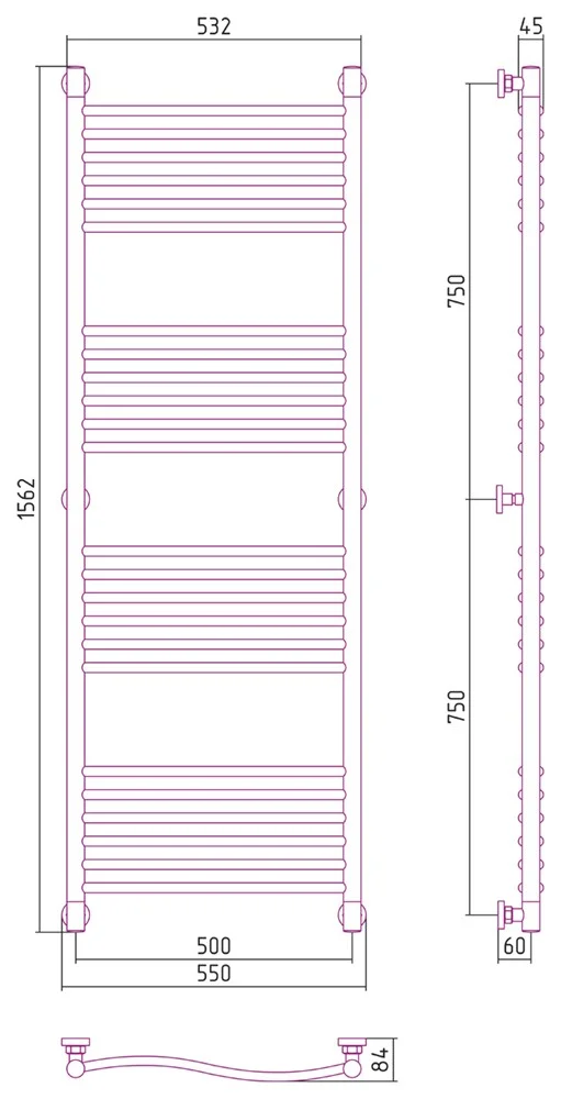 Полотенцесушитель водяной Сунержа Флюид+ 1500х500 00-0222-1550 Без покрытия