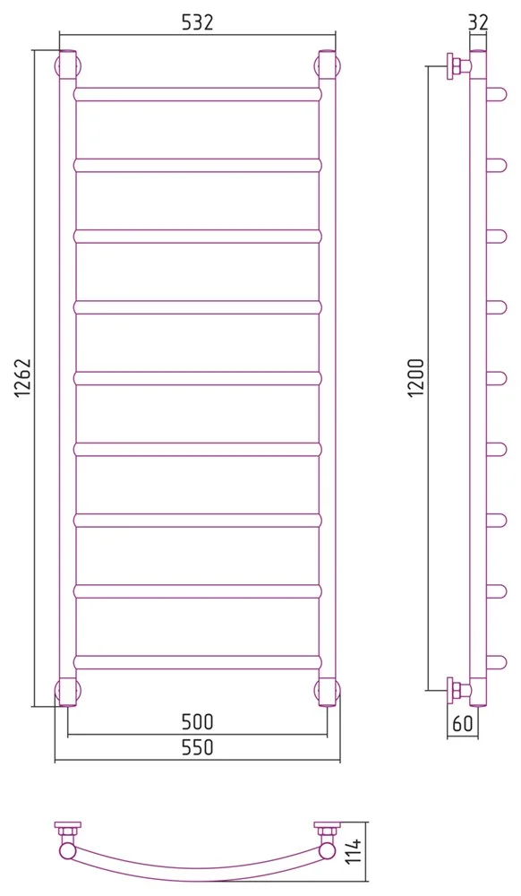 Полотенцесушитель водяной Сунержа Галант+ 1200х500 00-0200-1250 Без покрытия