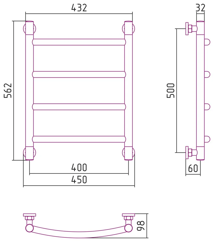 Полотенцесушитель водяной Сунержа Галант+ 500х400 30-0200-5040 Матовый белый