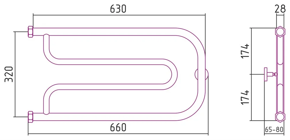 Полотенцесушитель водяной Сунержа Гусли 320х650 020-0009-3265 Шампань