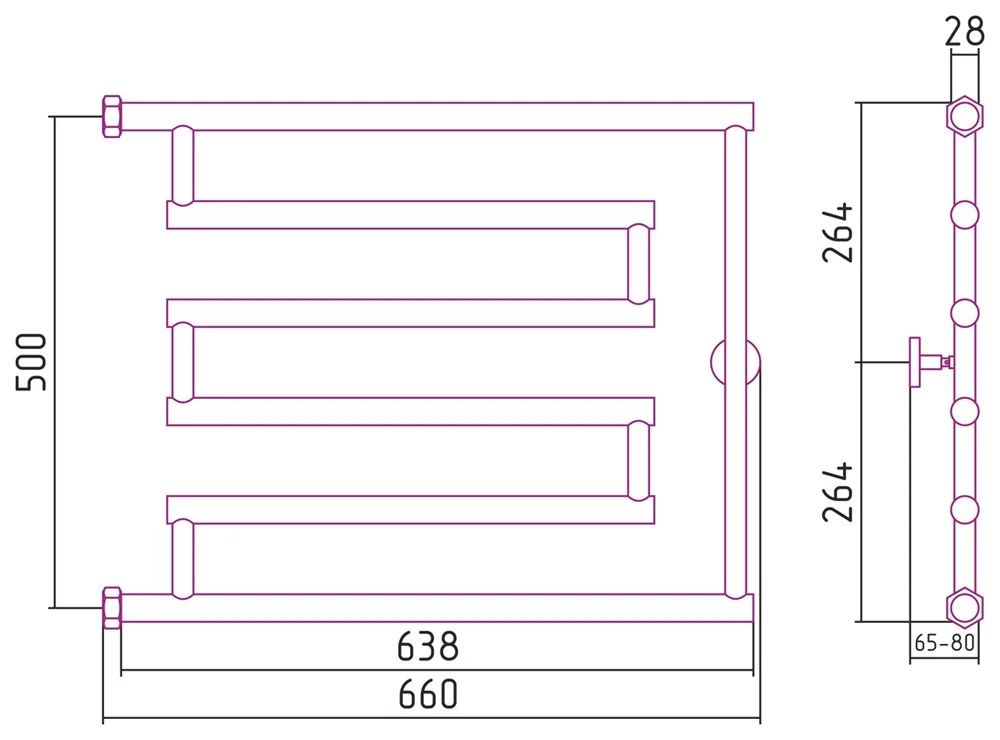 Полотенцесушитель водяной Сунержа High-Tech model L+ 500х650 03-4052-5065 Золото