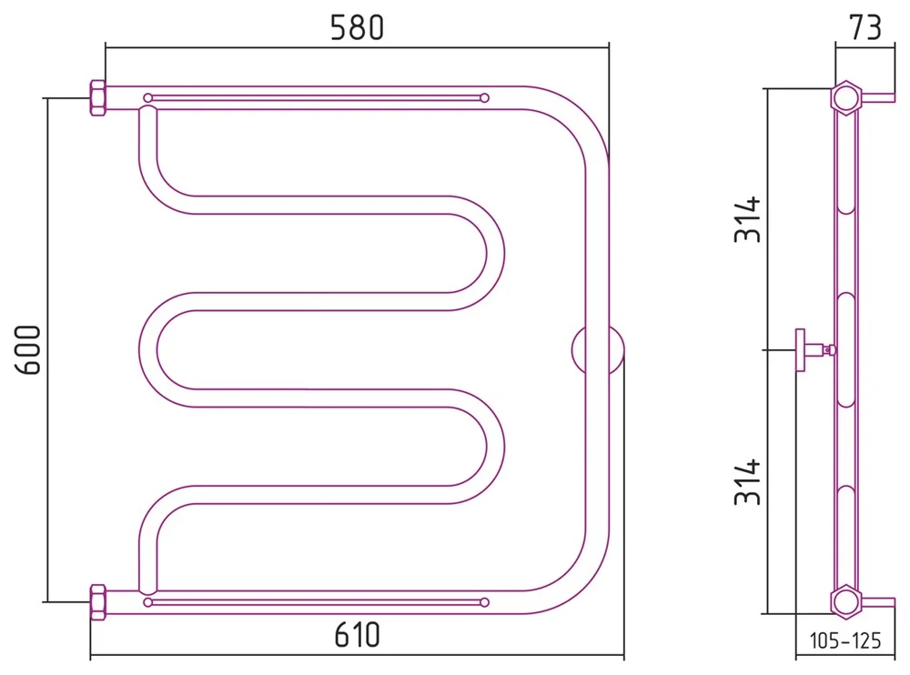 Полотенцесушитель водяной Сунержа Лира 2 полки+ 600х600 15-4012-6060 Темный титан муар