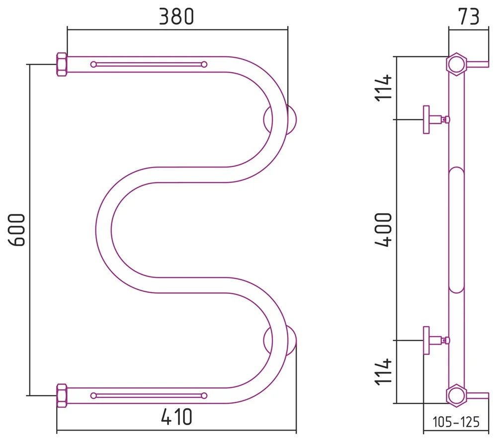 Полотенцесушитель водяной Сунержа М-образный 2 полки 600х400 00-0008-6040 Без покрытия