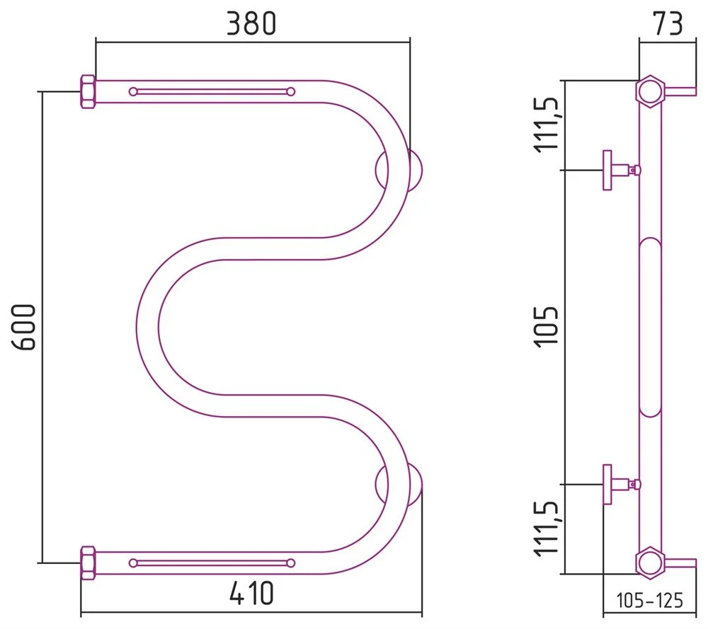 Полотенцесушитель водяной Сунержа М-образный 2 полки+ 600х400 00-4008-6040 Без покрытия