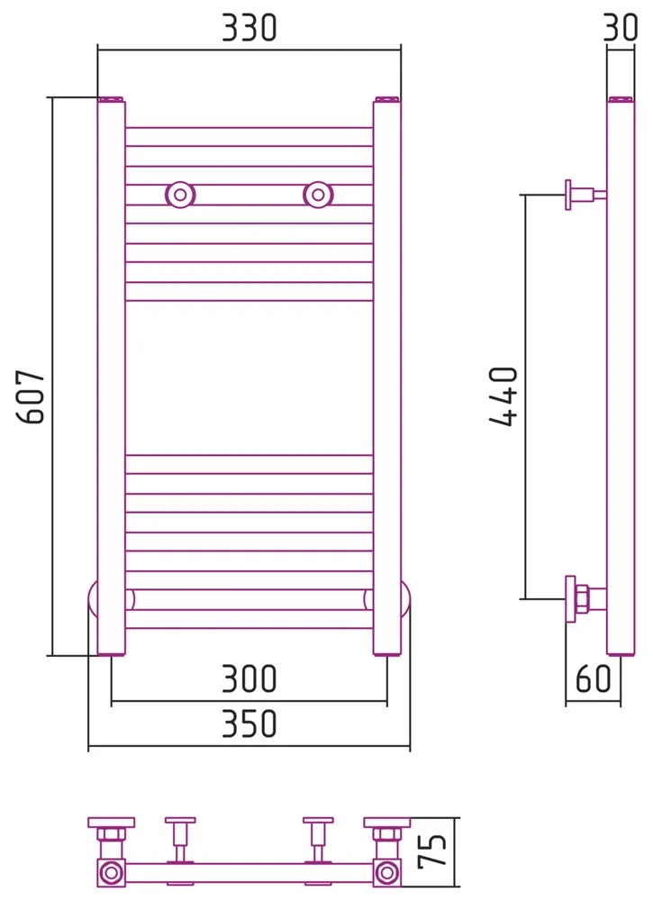 Полотенцесушитель водяной Сунержа Модус 600х300 31-0250-6030 Матовый черный