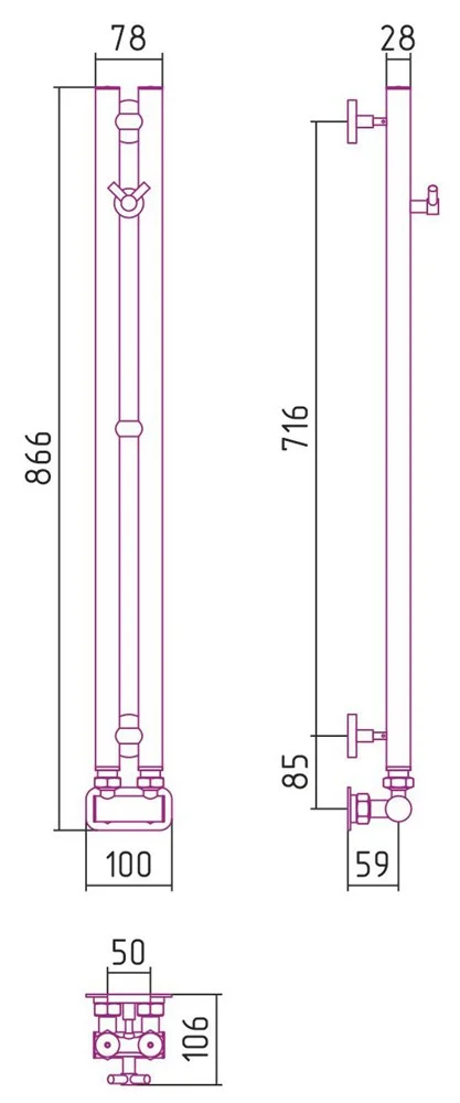 Полотенцесушитель водяной Сунержа Нюанс EU50+ 840х50 022-0212-0840 Матовая шампань
