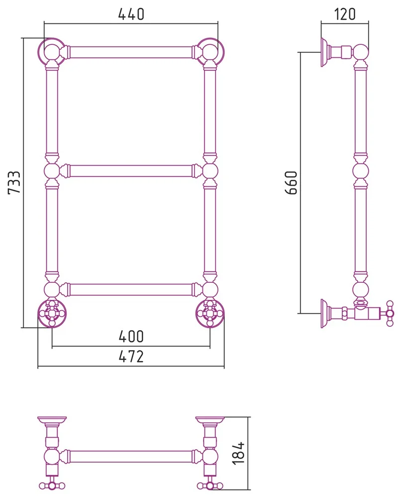 Полотенцесушитель водяной Сунержа Ренессанс 1304 660х400 30-0280-6640 Матовый белый