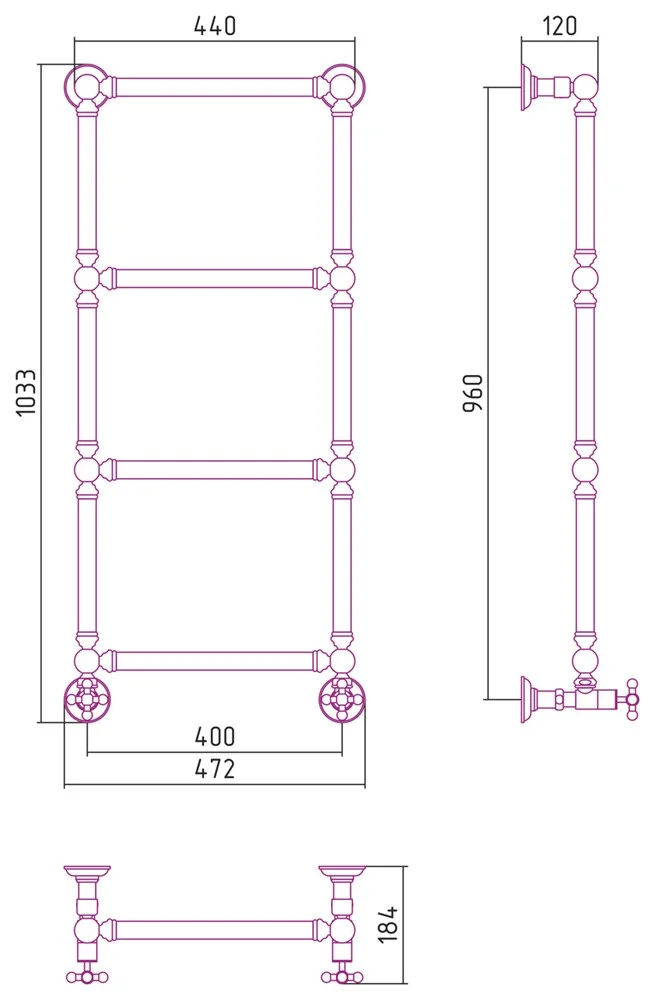Полотенцесушитель водяной Сунержа Ренессанс 1304 960х400 00-0280-9640 Без покрытия